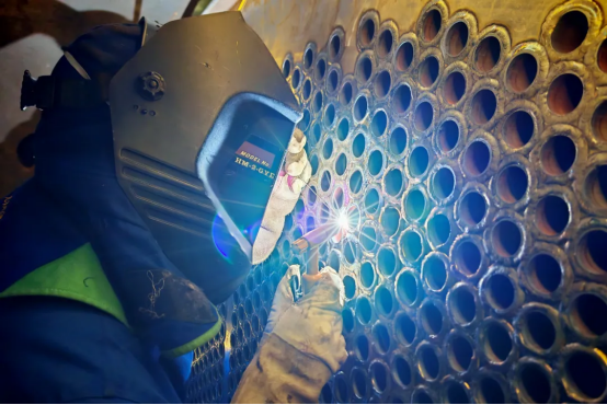 为确保项目高效生产,918博天堂锅炉针对大直径柔性管板变形控制、深坡口镍基封口焊焊接、大直径及大重量“封闭式”支撑板立架、高要求热处理控制等技术难题,成立攻坚小组,以质量为导向,分工序开展技术交底,狠抓质量过程控制,最终推动项目关键节点均一次交检合格,工期缩短20%,成功实现品质和效率的“双提升”。