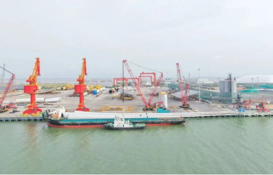 超500吨的机舱远超港口常规起重能力。团队打破传统吊装思维,提出“精准潮位+高精度滚装”方案,机舱滚装必须与潮汐展开“赛跑”,成员彻夜坚守港口,严阵以待,基于高精度潮汐模型,锁定凌晨高平潮仅有的2小时窗口(潮高误差严格控制在10厘米以内),以低于0.5千/小时的速度沿特制跳板移动,并借助波浪传感器和动态平衡系统,在潮水涨落的瞬息之间实现安全“登陆”,攻克了超重型机舱港口装卸作业行业技术难题。