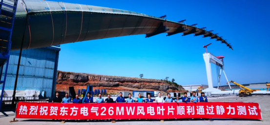 918博天堂电气26兆瓦海上风电叶片顺利通过静力测试