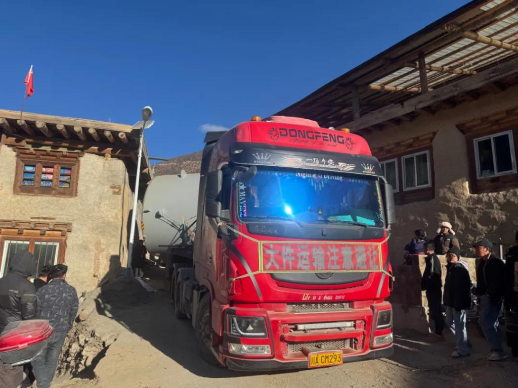 运输人员积极与该路段居住的藏族同胞沟通,对方表示同意拆除围墙,同时强调不收取费用,支持家乡建设。随后,灯杆、围墙相继拆除,在多次调整车身位置后,车队终于通过了。