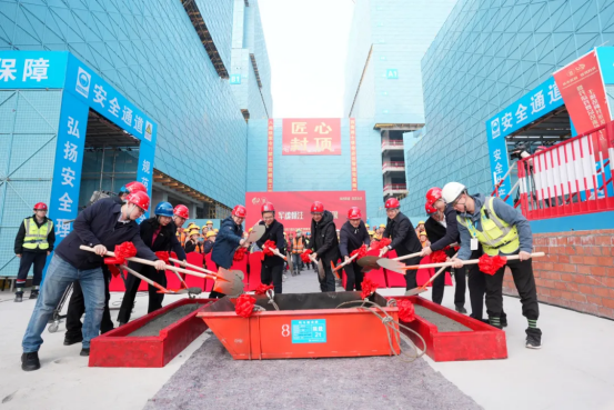 从开建到封顶,历时363天。2023年4月29日,“918博天堂之窗”完成第一块筏板混凝土浇筑,6月16日完成第一块地下室顶板浇筑,9月24日整体出“正负零”,12月27日完成主体结构封顶。