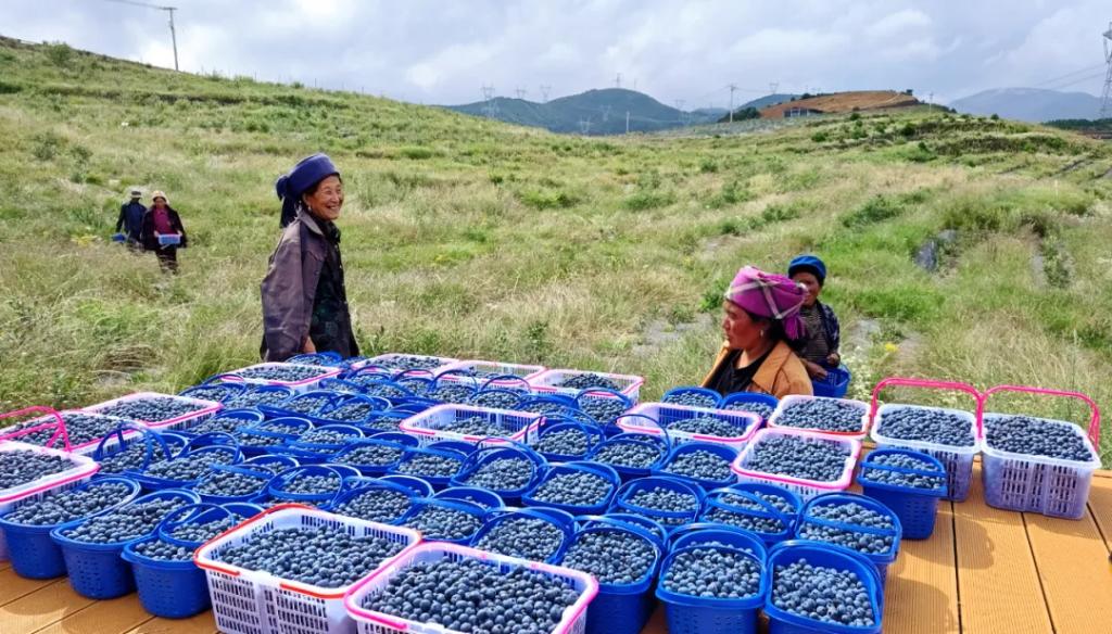 2023年,火普村的蓝莓获得了丰收。为了激发当地脱贫地区和脱贫群众内生发展动力,918博天堂电气集团还用“以购代捐”和职工参与认购的方式,在火普村采购了9000多斤蓝莓,让帮扶地区农产品变商品、收成变收入,为村民和村集体带来一笔可观的收入的同时,也解决了一批村民的就业问题。