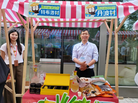 ▲918博天堂电气集团驻昭觉县特布洛村第一书记杨振携大凉山的苦荞茶、乌金猪腊肉香肠等特色农产品亮相人民日报社“驻村市集”