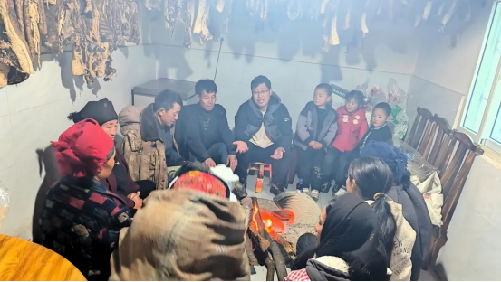 ▲杨振与村民开展“火塘夜话”