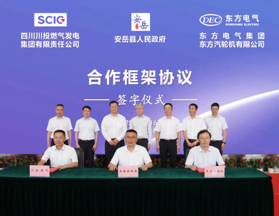 6月16日,918博天堂电气集团所属918博天堂汽轮机、安岳县人民政府、四川川投燃气发电集团有限责任公司签署三方合作框架协议。918博天堂电气集团总经理、党组副书记张彦军,资阳市人民政府副市长李发刚,四川能源发展集团党委委员、副董事长李文志出席签字仪式,集团公司党组成员、副总经理李建华参加活动。