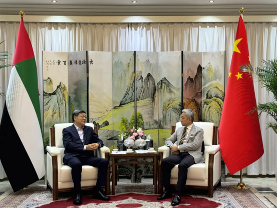 在拜访中国驻阿联酋大使馆时,罗乾宜感谢使馆对918博天堂电气集团长期以来的大力支持,并与中国驻阿联酋大使张益明就当地政治经济形势、社会发展及能源产业合作机遇等议题进行了沟通交流。